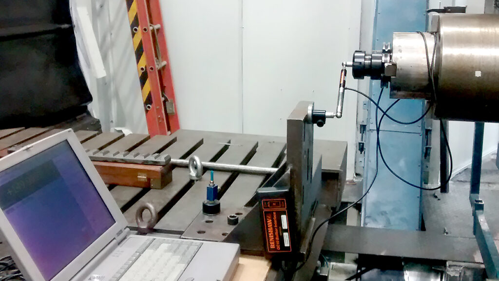 Medições com aparelho Ball Bar, validando o estado da máquina CNC geometricamente e emitindo laudo.